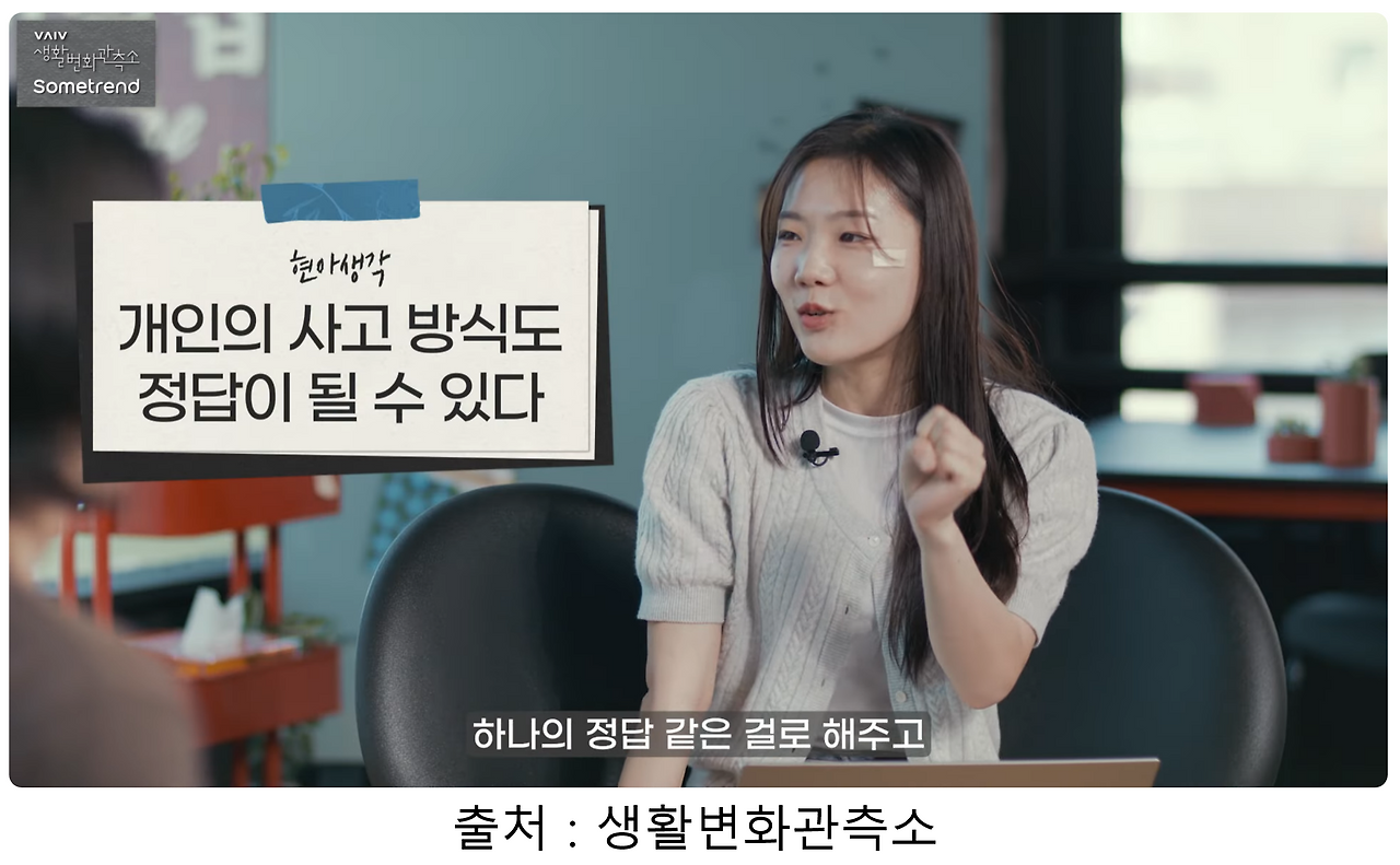 "사람들이 (원영적 사고 같은) 그런 새로운 사고를 좀 더 받아들이고, 저 사람의 마인드도 하나의 정답 같은 걸로 인정해 주고, 하나의 장르로 인식하고 있다."