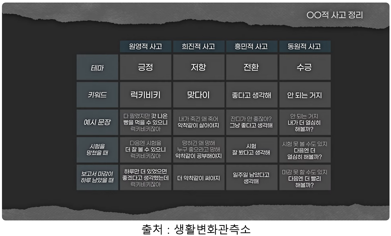 (아래의 4가지 사고 외에, '펠리컨적 사고' 같은, 많은 'OO적 사고'가 있습니다)