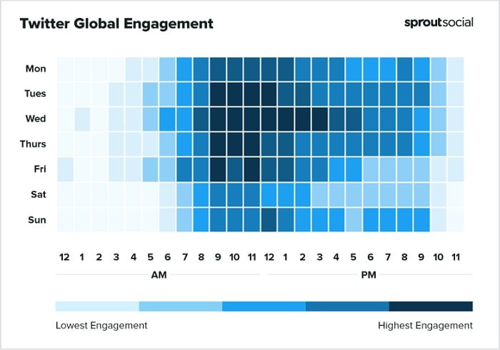 Sprout Social의 분석에 따르면, 약 20억 개의 참여 데이터를 바탕으로 400,000개의 소셜 프로필(Twitter, Facebook, LinkedIn, Instagram, Pinterest, TikTok)에서 가장 포스팅하기 좋은 시간은 다음과 같습니다: