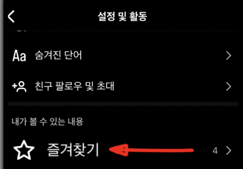 팔로우를 했다면 이제 설정으로 들어가서 [즐겨찾기]를 찾아주세요.