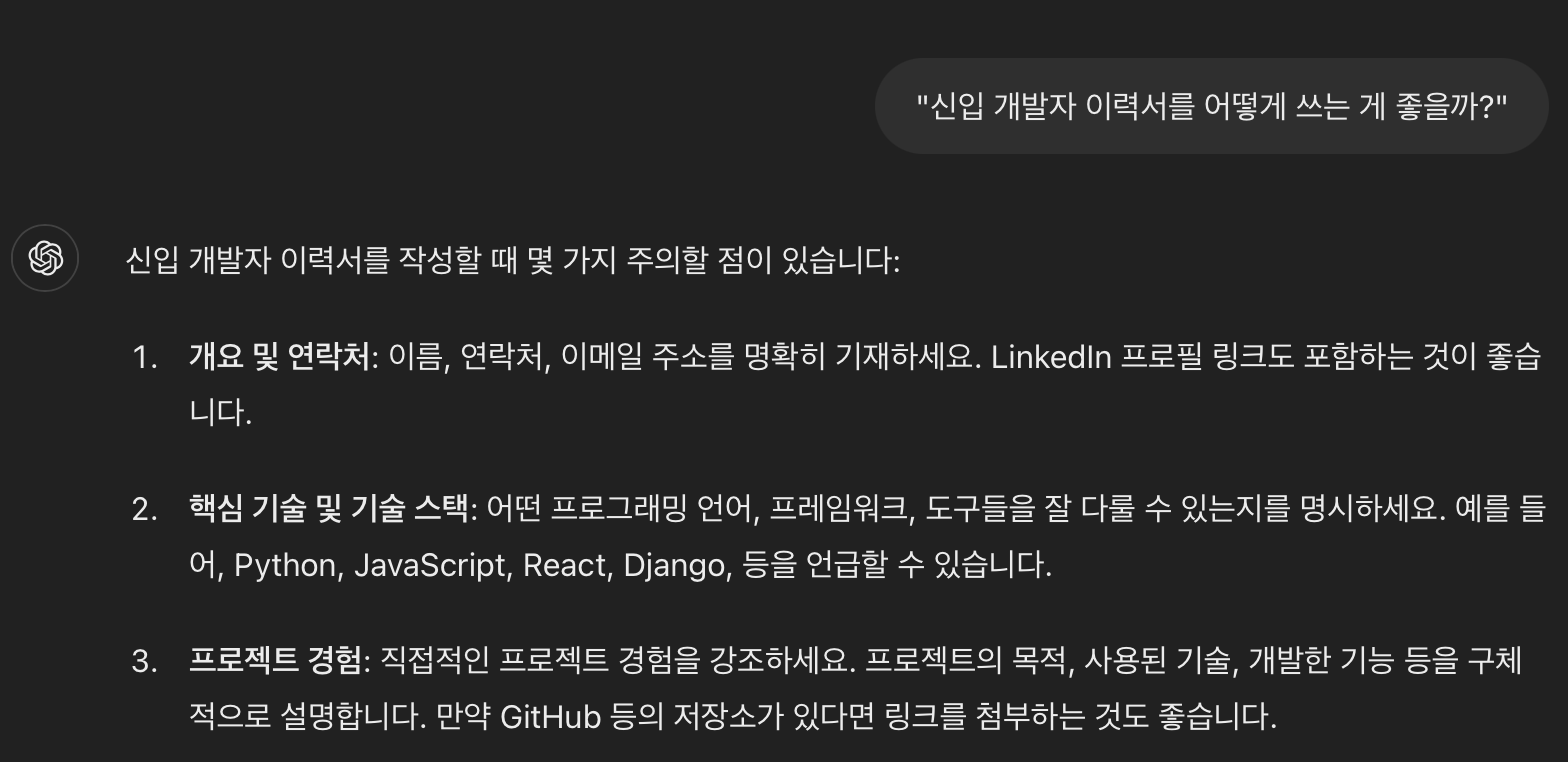 Q. 이력서를 작성할 때 챗GPT를 어떻게 활용하면 좋을까요?
