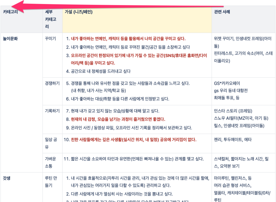 그리고 가설 중에 Pain, Needs가 큰 가설을 추려갔다.