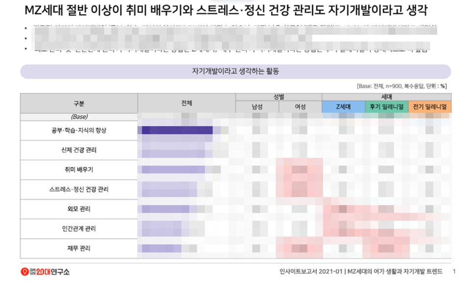 여러 리서치 자료가 있었지만..예로.. 대학내일20대연구소 (돈주고산 자료라 모자이크)