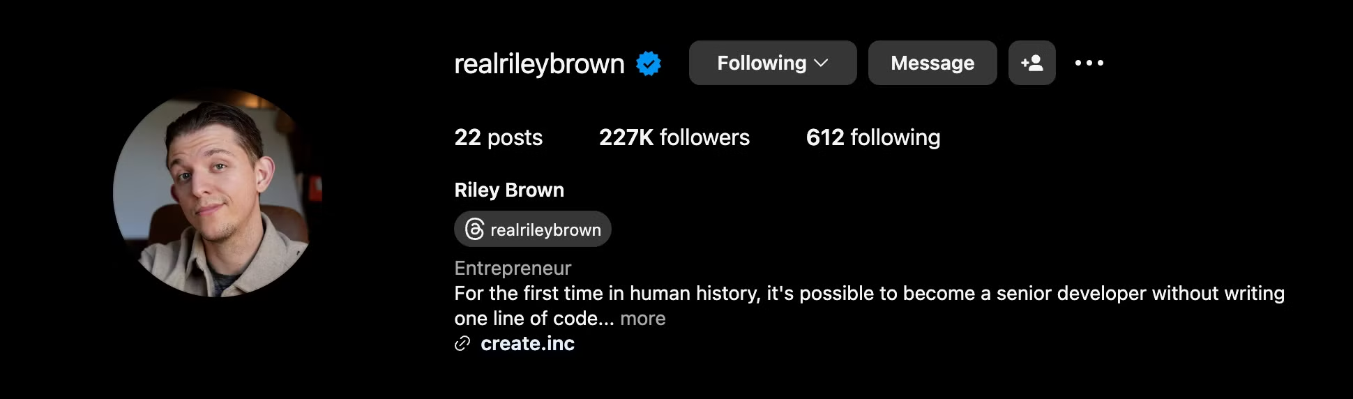 라일리 브라운(Riley Brown)은 불과 2년 만에 광고 스폰서로 월 12만 5천 달러(= 약 170,000,000원) 수익을 올리는 AI 크리에이터입니다.