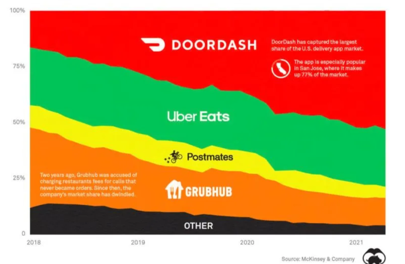 ํ๊ตญ์์๋ ์ผ์ฐ์ด ๋ฐฐ๋ฌ ๋ฌธํ๊ฐ ์๋ฆฌ์ก์๊ณ , ์ด์ ๋ฐฐ๋ฌ ์๋ ์ถ์ ์์ํ๊ธฐ ํ๋ค ์ ๋๋ก ์ฐ๋ฆฌ ์ผ์์ ๋ น์ ์์ต๋๋ค. ๊ทธ๋ฐ๋ฐ ๋ฏธ๊ตญ์ 2010๋ ๋ ์ด๋ง ํด๋ ์๋น์ 85%๊ฐ ์์ ๋ฐฐ๋ฌ ์์ฒด๋ฅผ ํ์ง ์์๋ค๊ณ ํด์. ๋ด์์๋ฅผ ์ ์ธํ๊ณ ๋ ๋ฐฐ๋ฌํ๋ ๊ณณ์ด ์๋ค๊ณ ๋ด๋ ๋ฌด๋ฐฉํ์ฃ . ๊ทธ๋ฐ ๋ฏธ๊ตญ์์ ๋ฐฐ๋ฌ ํ๋ซํผ์ผ๋ก 84์กฐ์ ๊ฐ์น๋ฅผ ๋ง๋ ์ฌ๋์ด ์์ต๋๋ค.