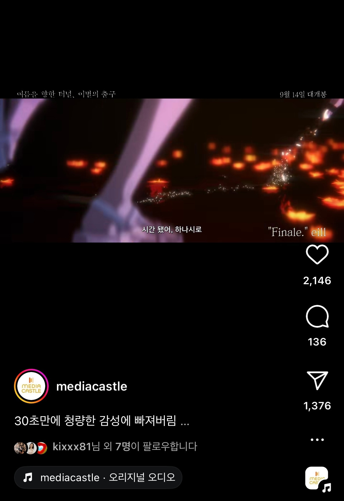 ‘여름을 향한 터널, 이별의 출구’ 애니메이션의 경우, 전체적으로 봤을 때 대중적인 콘텐츠는 아닐 것입니다. 개봉관 수도 제한적이었습니다. 하지만 <미디어캐슬>은 #일본감성 #일본첫사랑 #일본애니 타깃에 맞게 릴스를 편집해 시리즈로 발행했습니다. 그리고 타깃에 맞게 제작된 릴스는 17만 뷰 이상의 높은 조회수, 1300개 이상의 공유라는 놀라운 결과를 만들어냈습니다.