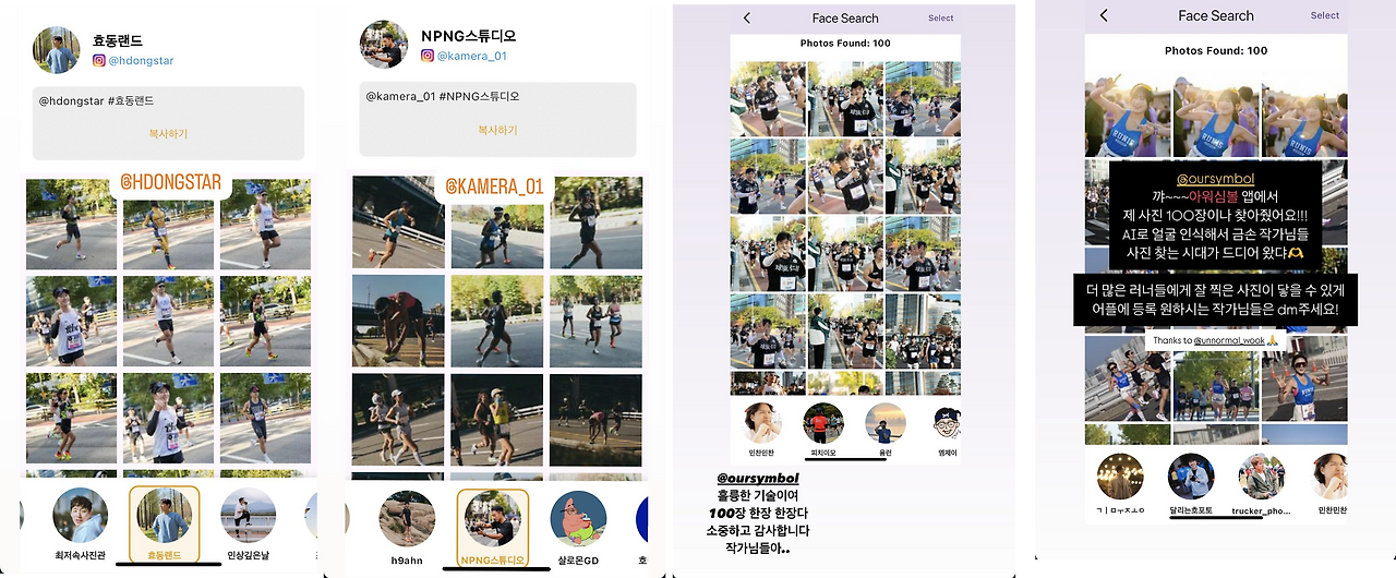 숫자부터 이야기해보자. 지난 3월 서울국제마라톤에서 시작된 아워심볼의 프로토타입 테스트가 이제 마지막 단계를 끝냈다. 그때는 29명의 작가님들이 9,599장의 사진을 공유해주셨는데, 이번엔 무려 78명의 작가님들께서 116,743장의 사진을 전달해주셨다. 작가님 수는 2.6배, 사진은 12.16배나 증가했다.