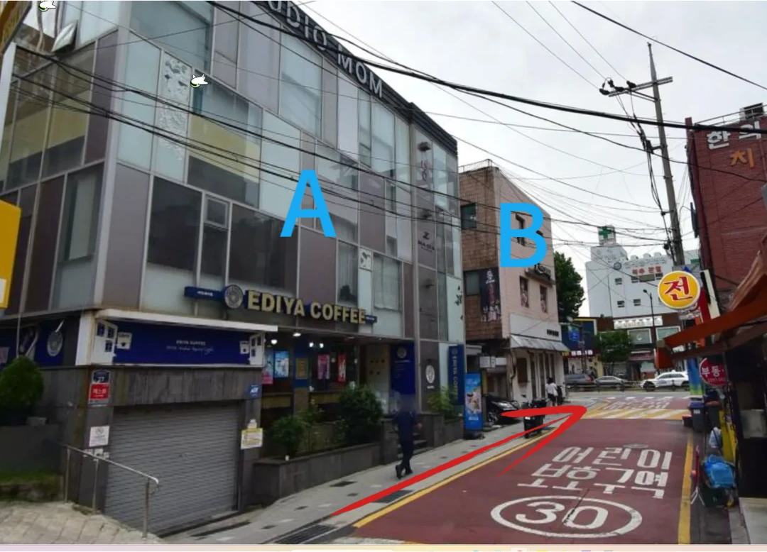 일단 내가 아래A건물을 매입했다고 가정하고. 2년쯤 뒤에 B의 건물주인이 1억에 팔려고 내놓은 상황을 생각해보자. 2년후 해당 토지시세는 여전히 9천이라했을때 매도인은 일단 1억에 내놓고 간을 볼것이다.