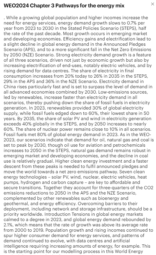 여기서 링크를 누르면, World Energy Outlook의 관련 챕터가 발췌되어 나옵니다.