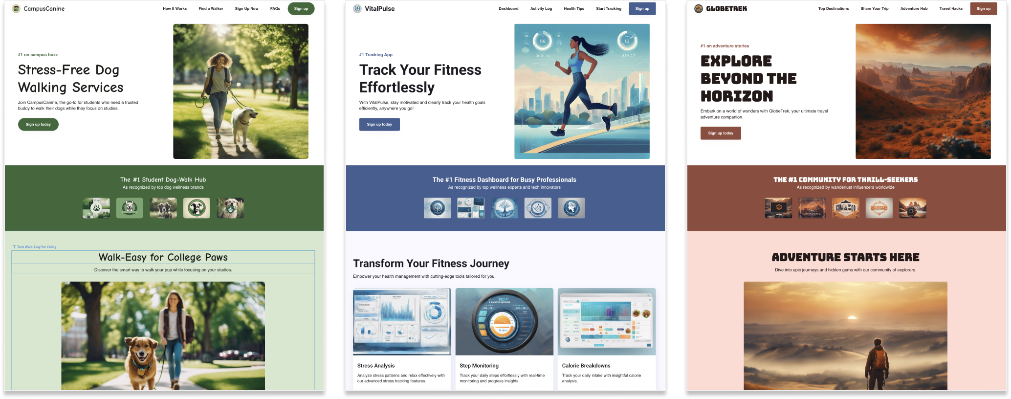 아래는 버블 AI가 만든 랜딩 페이지입니다. 입력한 프롬프트 값에 기반해 텍스트 및 이미지가 자동 입력이 됩니다. 이때, 이미지와 폰트도 프롬프트에 기반해서 스타일이 지정이 됩니다. 또한, 반응형 UI도 자동 처리가 되어있어 PC, 테블릿과 모바일에 모두 대응되는 UI가 만들어집니다. 다만, 버블이 외국 서비스다보니 텍스트는 영어로 입력되는 게 흠입니다.