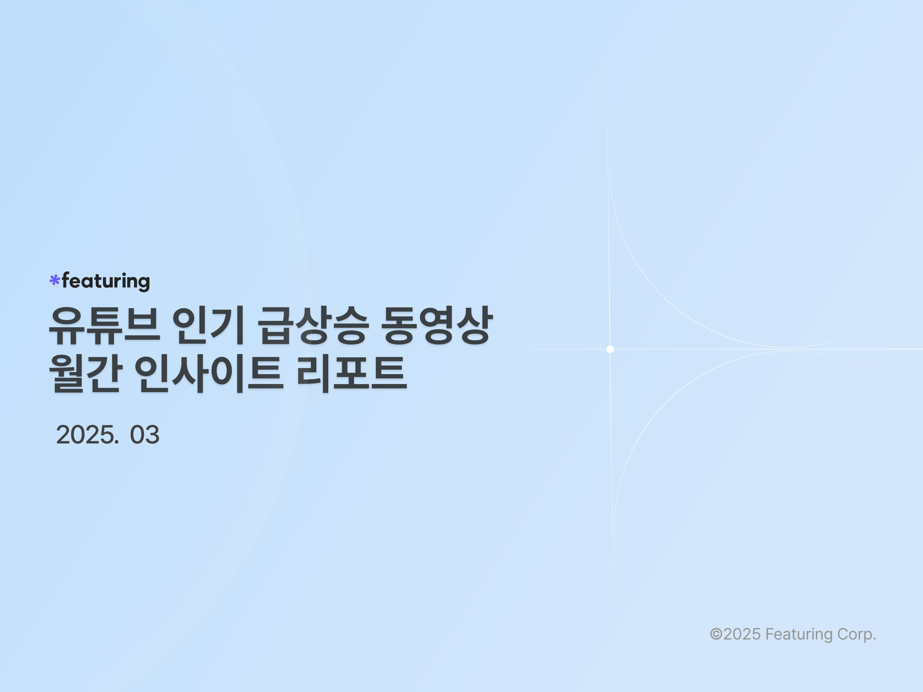 리포트는 매월의 유튜브 인급동과 관련된 데이터 1,600만개 인플루언서 채널 데이터와 3억건 이상의 콘텐츠를 실시간 수집 및 분석하는 피처링 AI 엔진을 활용하여 수집하여 작성되었습니다.