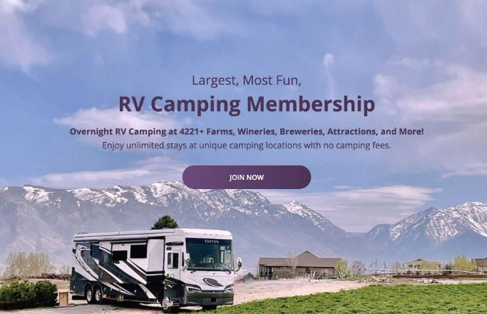 Harvest Hosts는 연회비를 내고 와이너리, 양조장, 골프장, 목장과 농장 등에서 캠핑카를 이용할 수 있는 숙박 & 경험 서비스를 제공하는 멤버십 스타트업이다. RV 소유주를 위한 무한한 여행 콘텐츠!
