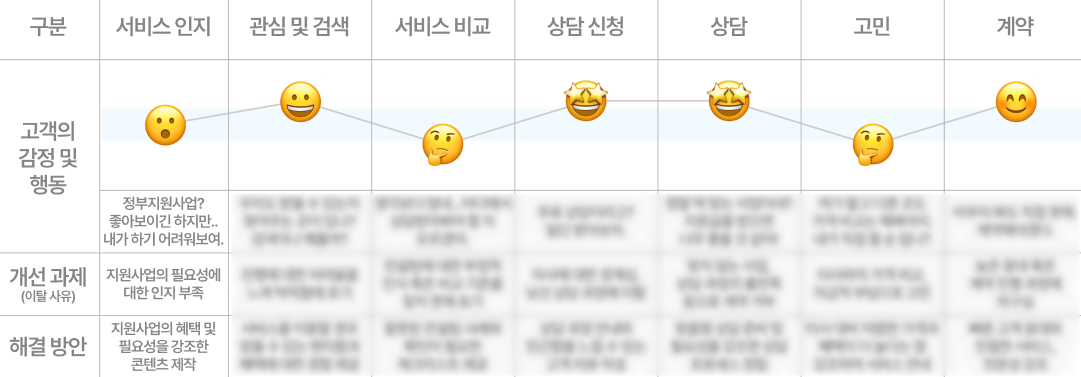 아래는 비즈큐브솔루션의 고객 여정지도 중 일부입니다.