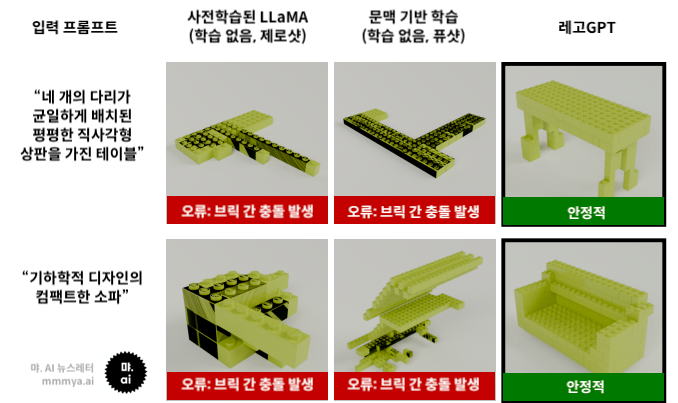 ๊ตฌ์กฐ ์์ ์ฑ ํ๋จ์ ๋จ์ํ ์๋ฎฌ๋ ์ด์ ์ด ์๋๋ผ, ๋ธ๋ฆญ ๋จ์๋ก ์ค๋ ฅยท์ง์ง๋ ฅยท๋ง์ฐฐ๋ ฅ ๋ฑ์ ๊ณ์ฐํด ์ ์ฒด ๊ตฌ์กฐ์ ๊ท ํ์ ์ ์งํ๋ ๋ฐฉ์์ ๋๋ค. ์์ฑ ๋์ค ๊ตฌ์กฐ๊ฐ ๋ฌด๋์ง๋ฉด ๋ฌธ์ ๊ตฌ๊ฐ๋ถํฐ ๋ค์ ์ค๊ณํ๋ โphysics-aware rollbackโ ๋ฐฉ์์ผ๋ก, ๋ฌด์กฐ๊ฑด ์กฐ๋ฆฝ ๊ฐ๋ฅํ ๊ตฌ์กฐ๋ง ์ต์ข ์ ์ผ๋ก ๋จ๊ฒ ๋์ง์. ๋ ๊ณ GPT๋ ์์ ์ด ์ค๊ณํ ๋ ๊ณ ๊ตฌ์กฐ๊ฐ ์ค์ ๋ก ๋ฌด๋์ง์ง ์๊ณ ์กฐ๋ฆฝ๋ ์ ์๋์ง๋ฅผ ์ฌ์ ๊ฒ์ฆํ๋ AI ๋ชจ๋ธ์ ๋๋ค.