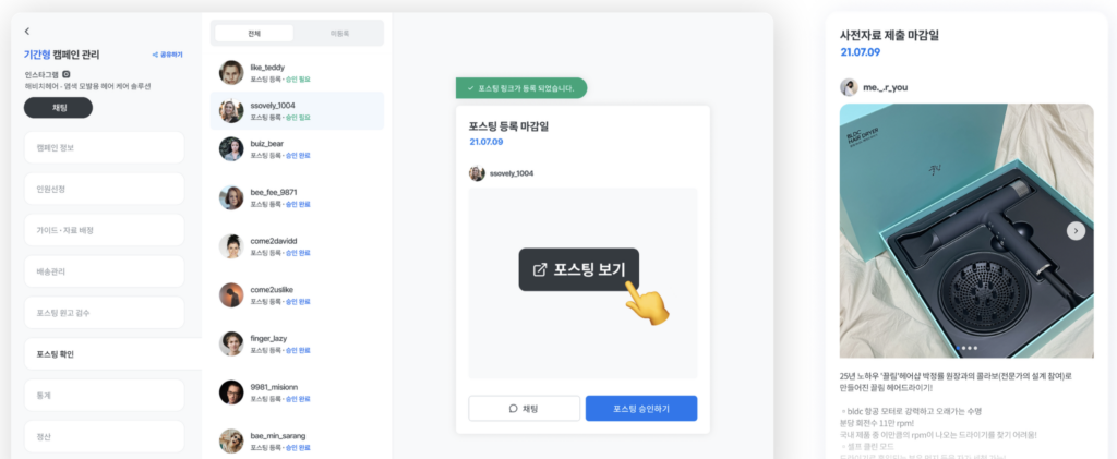 태그바이 플랫폼에서 인플루언서 모집부터 계정 데이터 분석, 포스팅 모니터링, 성과 측정, 정산까지 간편하게 운영할 수 있습니다.