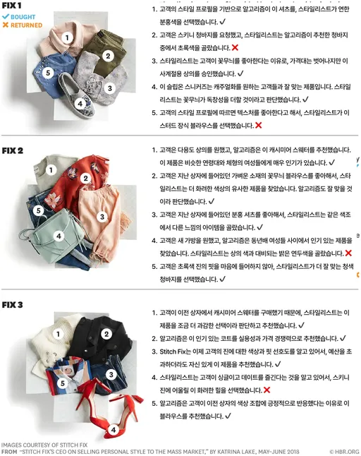 ํ์ง๋ง ์คํฐ์น ํฝ์ค๋ ๋จ์ํ ์๊ณ ๋ฆฌ์ฆ๋ง์ผ๋ก ์ด์๋๋ ํ์ฌ๋ ์๋์์ต๋๋ค. 3,000๋ช ์ด ๋๋ ์คํ์ผ๋ฆฌ์คํธ๋ฅผ ์ง์ ๊ณ ์ฉํด ๊ณ ๊ฐ ๋ง์ถคํ ์คํ์ผ๋ง์ ์ ๊ณตํ๊ณ ์์์ฃ . ์๋ฅผ ๋ค์ด, ์ฒญ๋ฐ์ง๋ฅผ ์ถ์ฒํ๋ ๋ฐ๋ ์๊ณ ๋ฆฌ์ฆ์ด ํ์ํ๊ฒ ์ ํํ์ต๋๋ค. ์ค์ฉ์ฑ๊ณผ ๊ฐ๊ฒฉ ๊ฒฝ์๋ ฅ ๊ฐ์ ์์๋ฅผ ๊ณ์ฐํ๋ ๋ฐ๋ ๋ฐ์ดํฐ๊ฐ ๊ฐํ๋๊น์. ํ์ง๋ง ์ด๋ค ๊ฒฝ์ฐ์๋ ์คํ์ผ๋ฆฌ์คํธ์ ์ง๊ด์ด ๋ ์ค์ํ ์ญํ ์ ํฉ๋๋ค. ์๊ณ ๋ฆฌ์ฆ์ด ์ค์ฉ์ฑ๊ณผ ๊ฐ๊ฒฉ ๊ธฐ์ค์ผ๋ก ํน์ ์ ๋ฐ ์ข ๋ฅ๋ฅผ ์ถ์ฒํ ๋, ์คํ์ผ๋ฆฌ์คํธ๋ ๊ทธ ์ค์์๋ ๋ ์ฐฝ์ฑ์ด ๋๋ณด์ด๋ ๊ฝ๋ฌด๋ฌ ์ฝํธ๋ฅผ ์ ํํ๊ฑฐ๋, ์ด์ ๊ตฌ๋ ์์์์ ๊ณ ๊ฐ์ด ์ ํํ๋ ์ ํ๊ณผ ์ ์ฌํ ์นดํ ๊ณ ๋ฆฌ ๋ด์์ ์กฐ๊ธ ๋ ๊ณผ๊ฐํ ์คํ์ผ์ ์ ์ํ๊ธฐ๋ ํฉ๋๋ค. ๊ณ ๊ฐ์ด ๋์น๊ธฐ ์ฌ์ด ์ ํ์ง๋ฅผ โํ ๋ฐ ์์ ์ ์โํ๋ ๊ฒ์ด ์คํ์ผ๋ฆฌ์คํธ์ ์ญํ ์ด์, ์คํฐ์น ํฝ์ค๊ฐ ์ธ๊ฐ์ ํ๋จ์ ๊ฒฐ์ฝ ํฌ๊ธฐํ์ง ์๋ ์ด์ ์์ต๋๋ค.