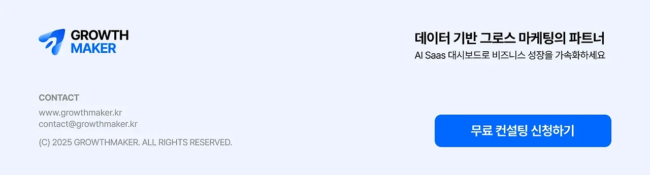 이 글은 '1명의 인건비로 마케팅 낭비 ZERO' 그로스메이커의 블로그 콘텐츠입니다.