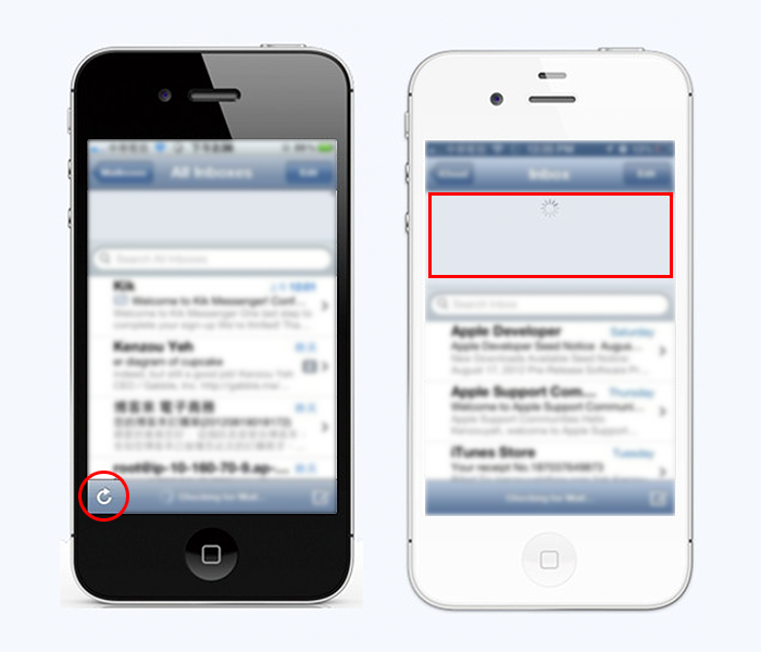 새로고침 버튼은 iOS 5에서 iOS 6으로 넘어가면서 사라졌다.