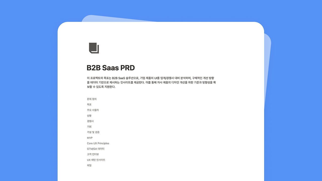 또한 단일 지표 몇 가지만 개선해서는 UX 전체를 발전시키기 어렵기 때문에, 시장 전반의 성장 방향과 우리 서비스의 위치를 꾸준히 모니터링해야 하는 어려움이 존재했어요. 이 두 가지 고민—객관적인 비교 기준의 부재와 지속적인 시장 모니터링의 어려움—을 해결하기 위해, 정량·정성 데이터를 한 곳에서 비교 분석할 수 있는 B2B UX 대시보드를 기획하게 되었습니다.