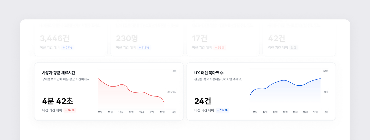 대시보드 내 어떤 기능들이 실제로 들어갔고, 어떤 데이터를 기반으로 UX 인사이트를 제공하는지 구체적으로 소개해 드릴게요.