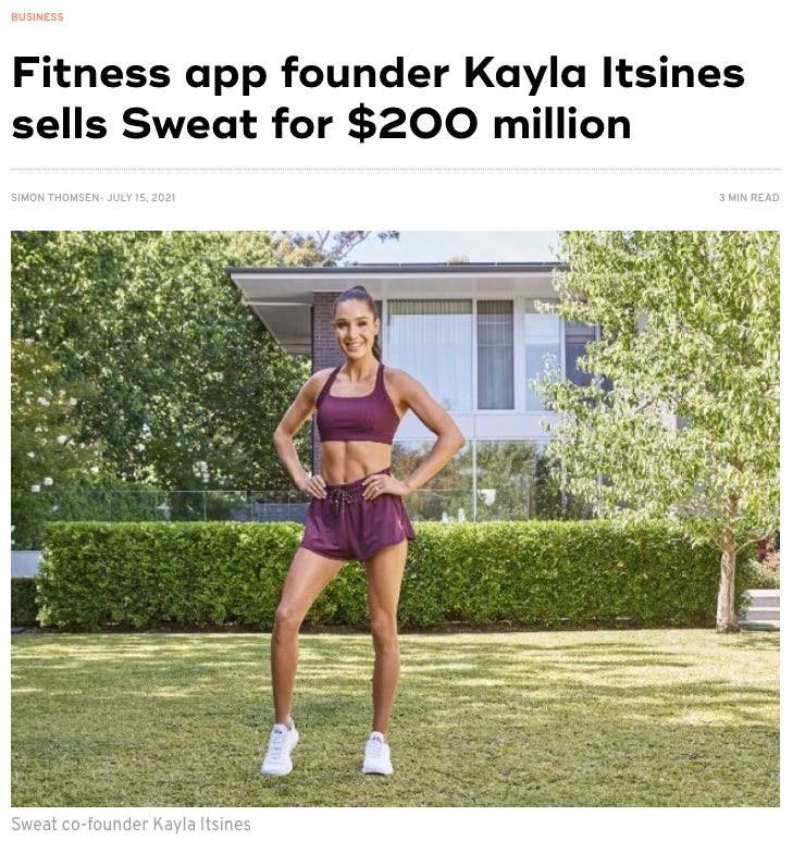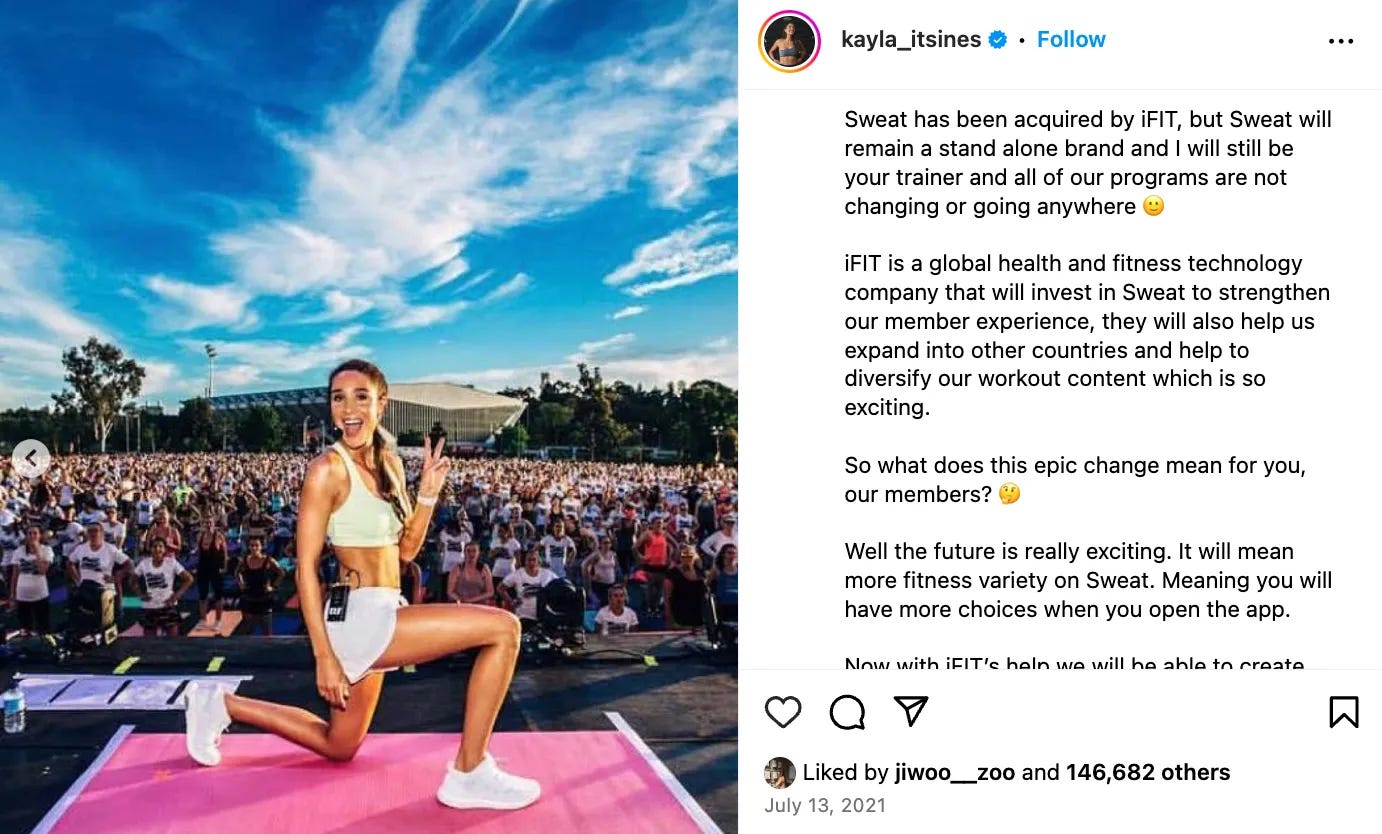 2021년, 글로벌 피트니스 기업 iFIT에서 그녀의 'Sweat' 앱을 2,400억원에 인수하기로 한 것이에요.