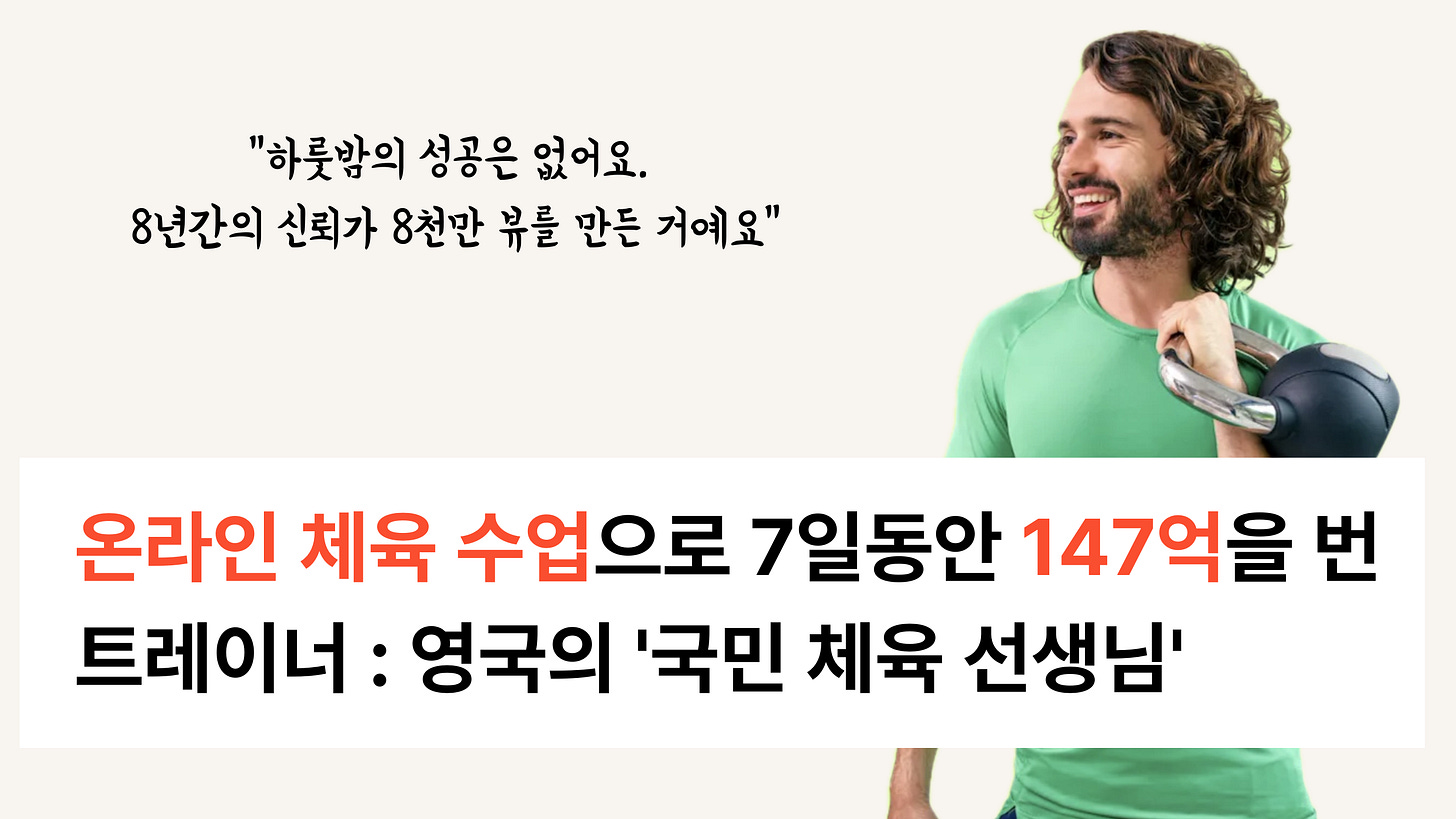 하지만 오늘 소개할 조 윅스(Joe Wicks)의 사례는 정말 차원이 달랐어요.