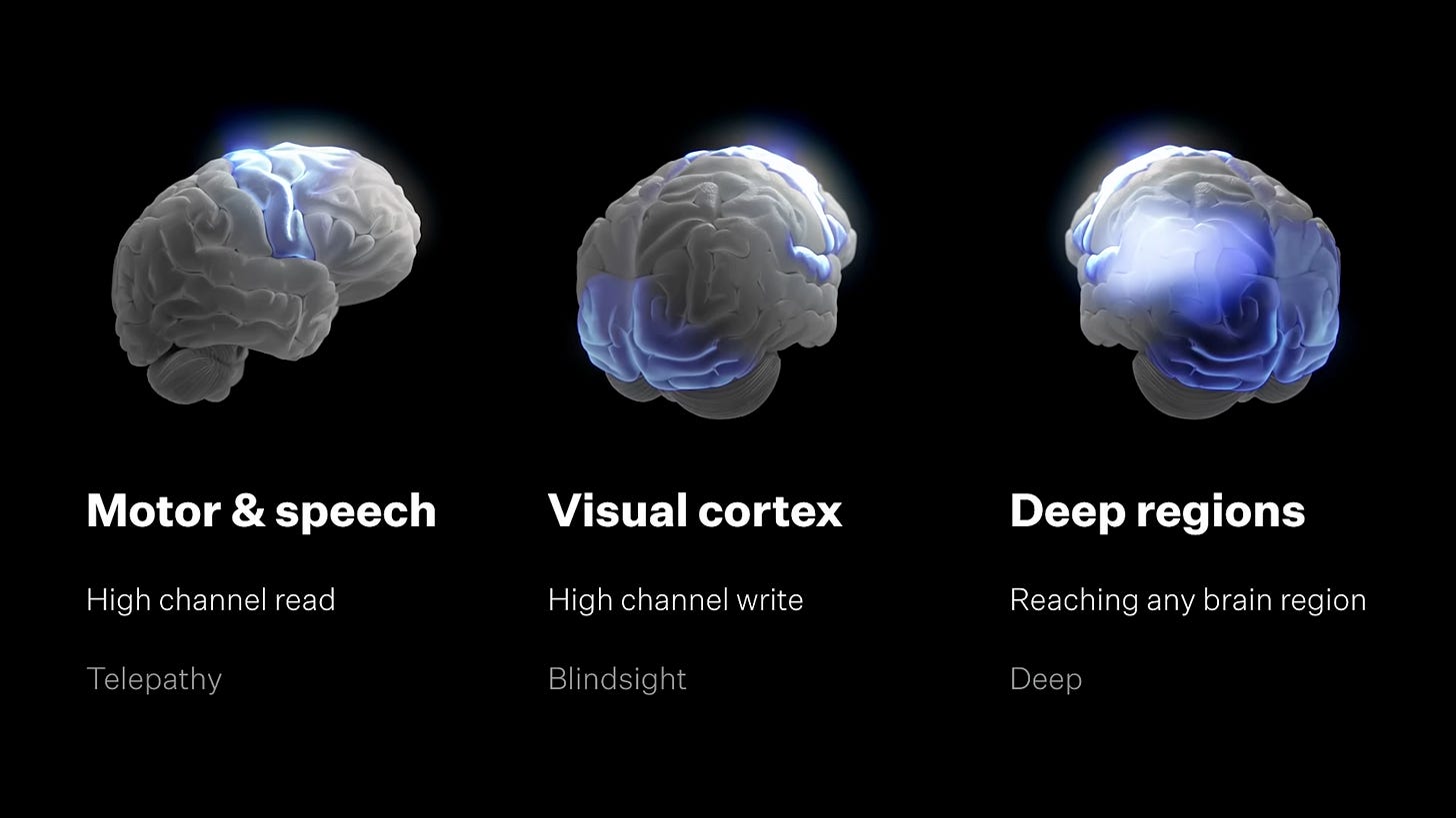 2027년: 채널 수를 10,000개로 늘리고, 운동, 언어, 시각 피질^등 여러 뇌 영역에 동시에 다중 임플란트를 적용하여 '전뇌 인터페이스' 구축을 계획^중입니다.