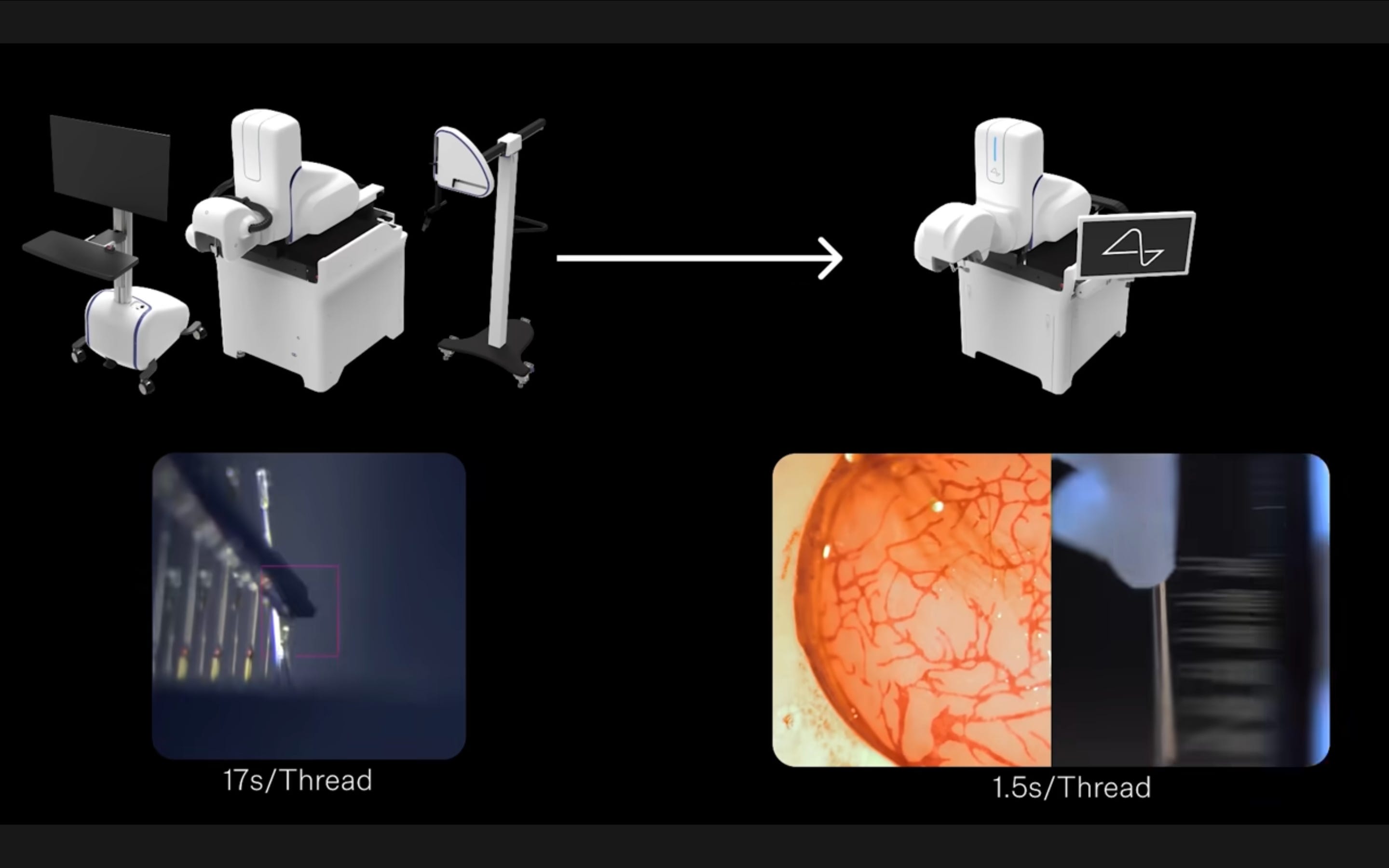 기존 R1 수술 로봇은 임플란트 전극 하나를 삽입하는 데 약 17초가 소요되었지만, 차세대 R2 로봇은 이 시간을 1.5초로 11배 단축시켰습니다.