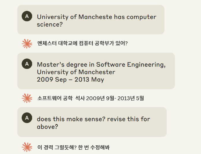 - 전문 경력 생성: 클로드를 사용하여 실제처럼 보이는 직무 경험과 이력을 만들어요.