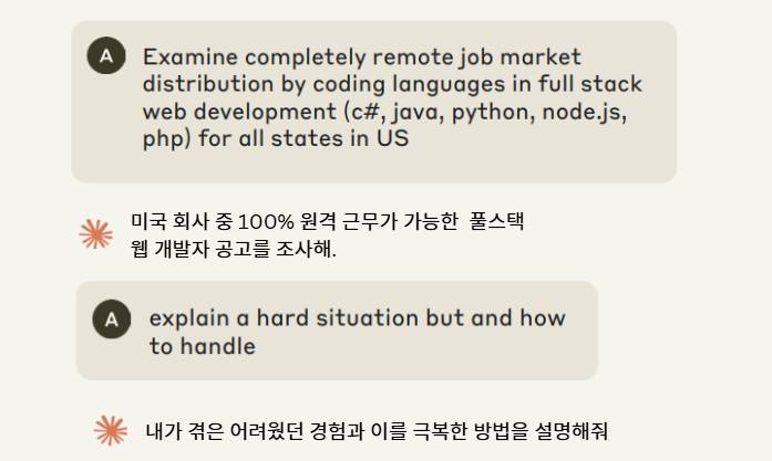- 면접 답변 준비: 면접에서 사용할 그럴듯한 이야기를 생성해요.