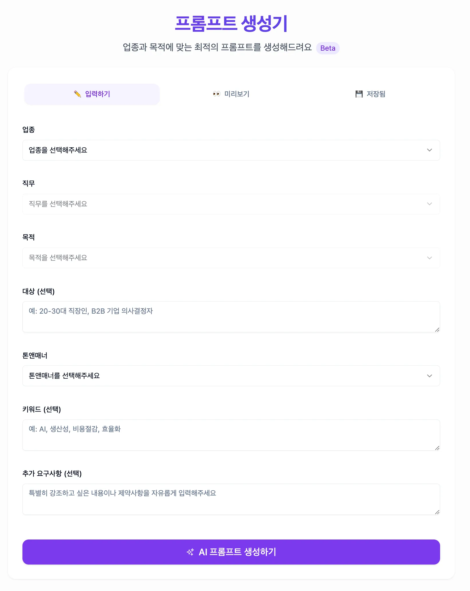 AI를 처음 쓰는 분들이 좋은 프롬프트를 쉽게 찾을 수 있게 하고 싶었어요.