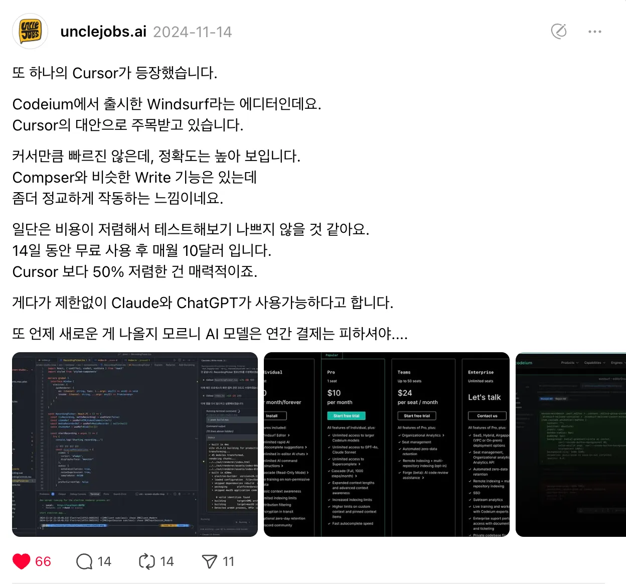 작년 11월, Windsurf를 켜고 Claude Sonnet 3.5에게 이렇게 말했어요.