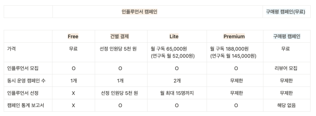 인플루언서 마케팅을 대행사에 맡기지 않고 직접 모집해서 운영할 수 있는 서비스입니다.