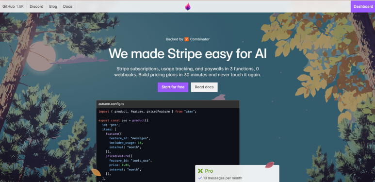 - 제공하는 가치: 많은 AI 스타트업은 복잡한 요금제를 사용합니다. 기본 구독료에 사용량, 크레딧, 추가 비용 등을 섞는 식이죠. 스트라이프에서 이런 복잡한 AI 요금을 관리하는 건 시간도 많이 들고 번거로운 일입니다. Autumn은 AI 스타트업이 스트라이프를 쉽게 연동할 수 있도록 오픈소스 인프라를 개발했습니다. 이미 수백 개의 AI 앱과 40개의 YC 스타트업이 이 기술을 쓰고 있다고 해요.