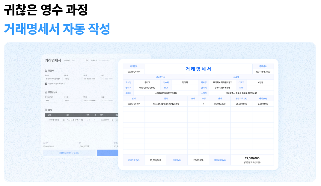 1. 견적서, 계약서, 세금계산서, 입금 확인까지 한 곳에서 관리