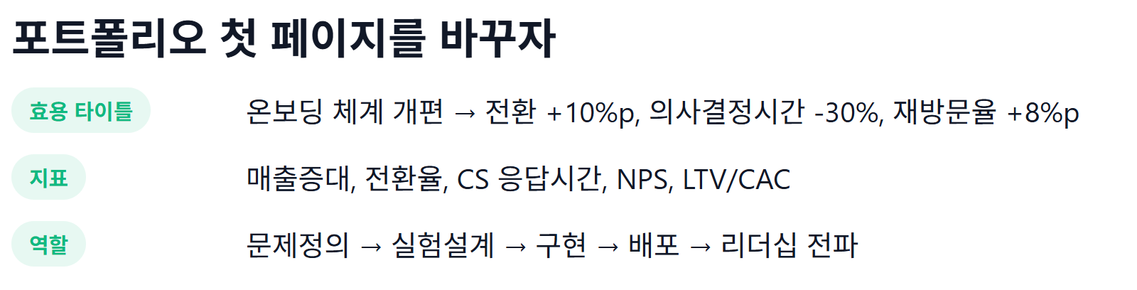 스펙은 쉽게 잊히지만, 효용의 면적은 성과와 데이터로 남아 끝내 우리를 증명한다.