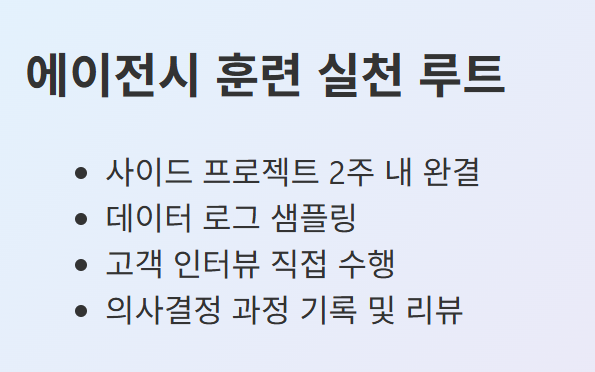 예를 들어, 본업과 연결된 작은 사이드 프로젝트를 2주 안에 완결해보자.
