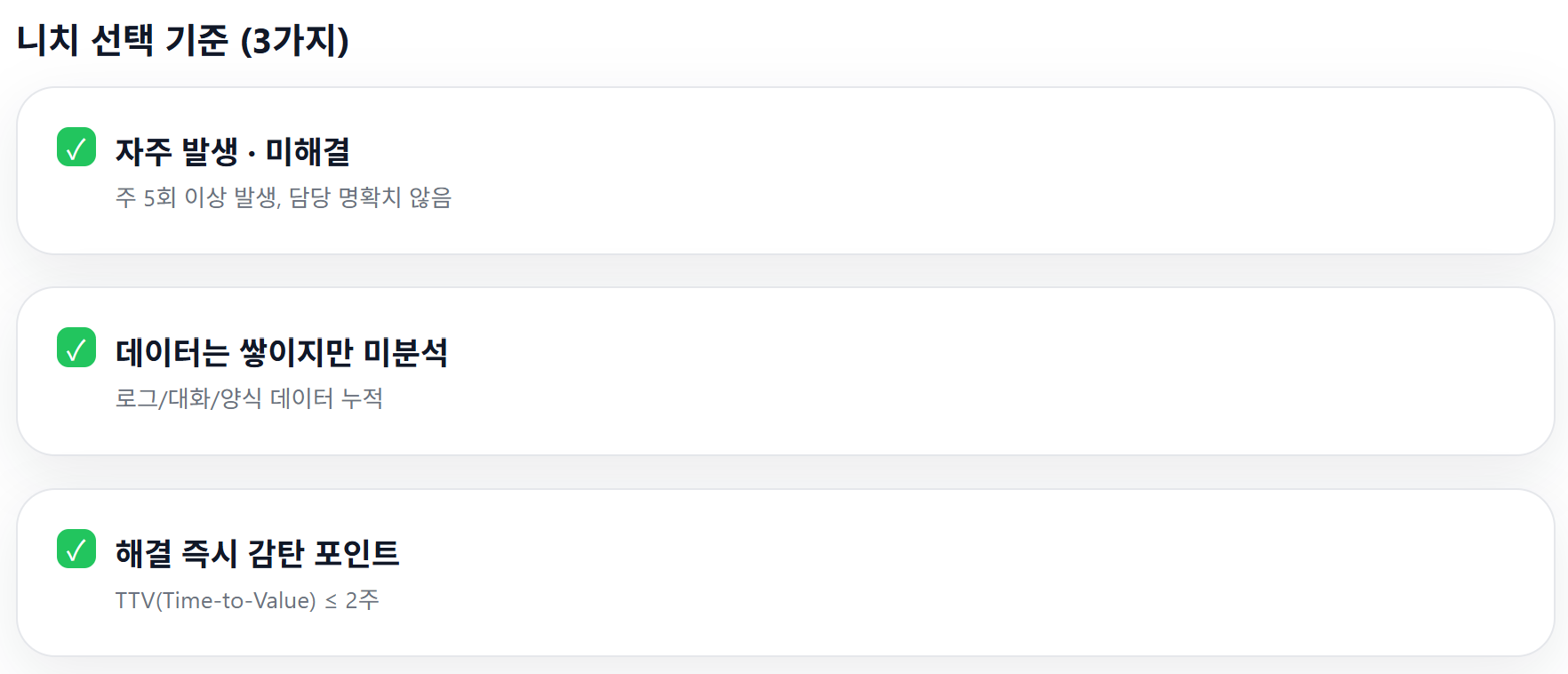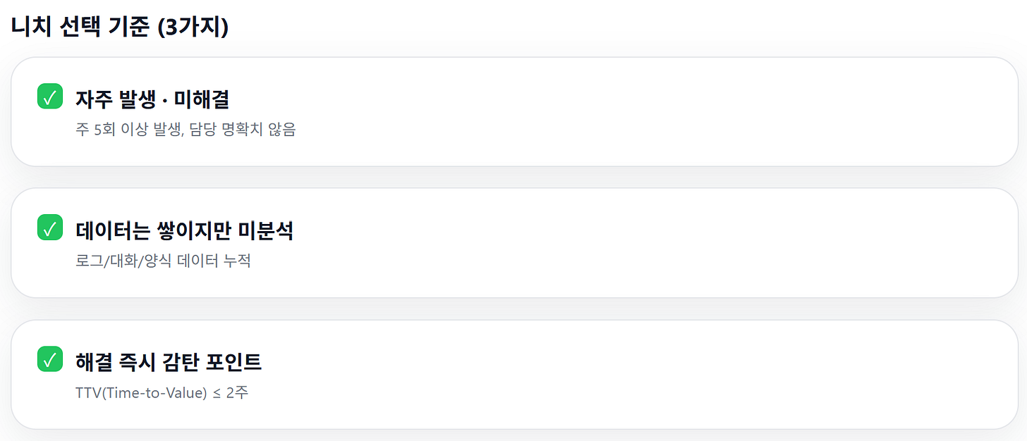 니치에서 시작해 작은 문제를 끝까지 해결하며,