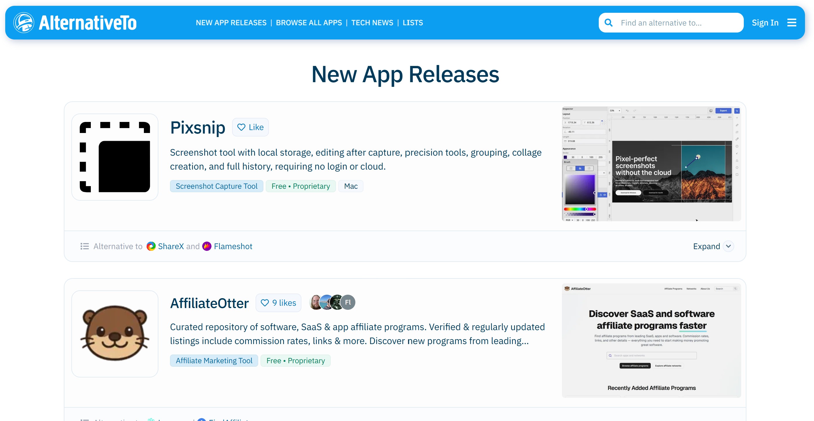 비슷한 곳으로는 베타리스트(BetaList)와 얼터너티브 투(AlternativeTo)가 있습니다.