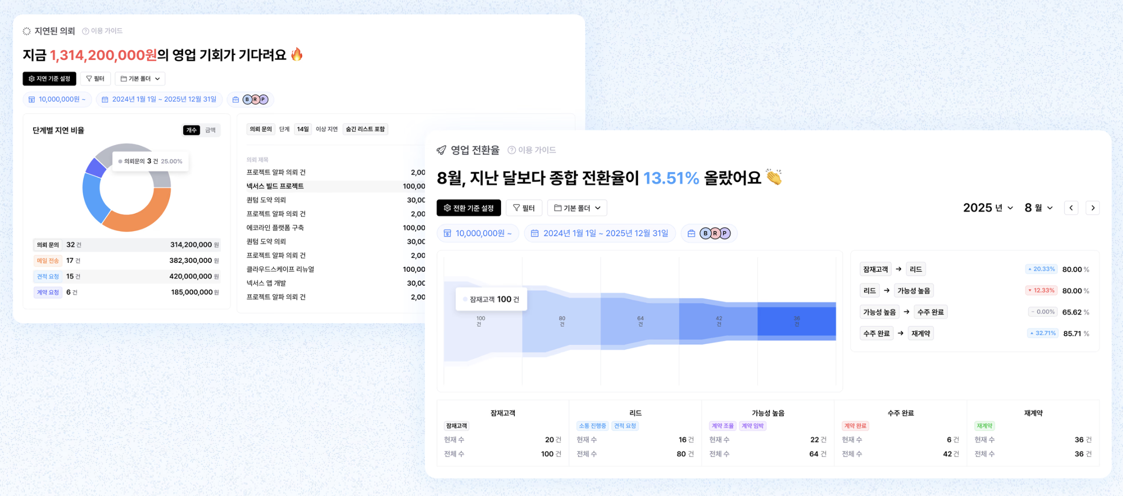 영업의 ‘흐름’을 한눈에 파악할 수 있고, 팀 전체가 동일한 데이터를 기반으로 움직이게 되는데요!