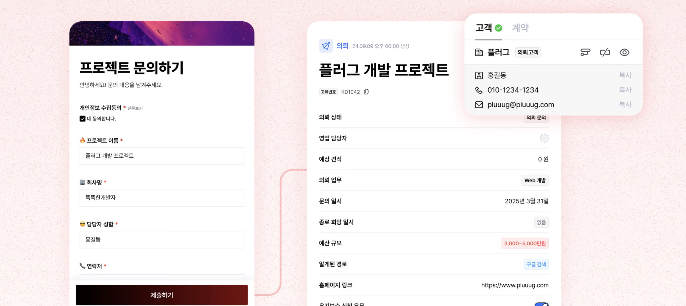 플러그로 문의 수집 및 영업관리 시스템을 만드세요.