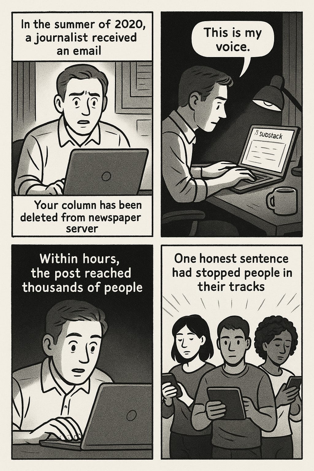 그날 밤, 그는 Substack에 첫 글을 올렸다.