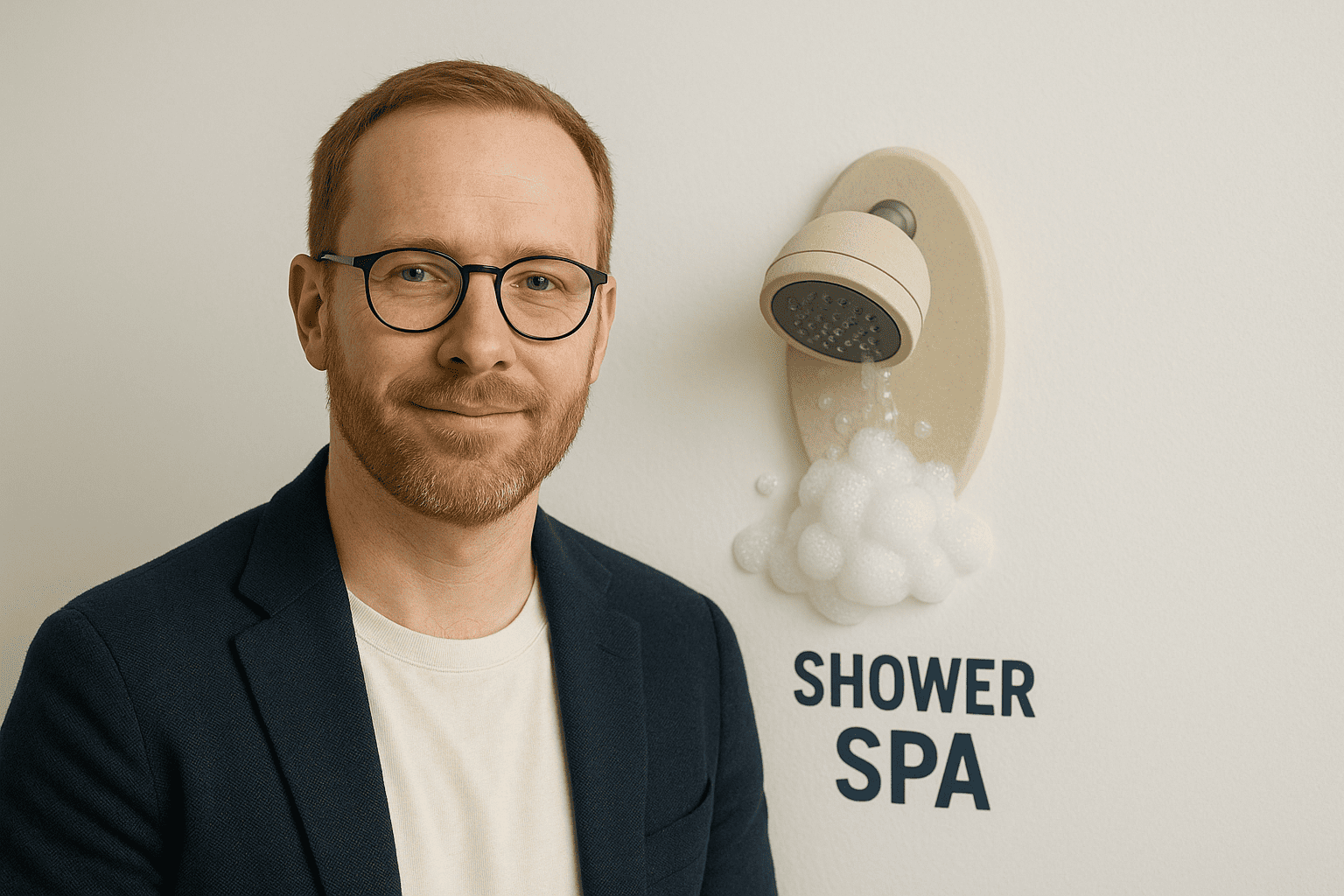 ์จ๋ฐ ์๋จธํ๋(Alan Summerfield)๋ โ์ค์ ์คํ(Shower Spa)โ๋ผ๋ ๋ธ๋๋๋ฅผ ์ฐฝ์ ํ์ต๋๋ค.