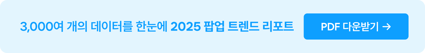 오늘 소개하지 못한 더 많은 팝업스토어 전략과 실제 데이터는 아래에서 확인하실 수 있어요. 2025 팝업스토어 트렌드를 한눈에 정리한 리포트를 통해, 내년 팝업 기획의 방향을 구체화해보세요.