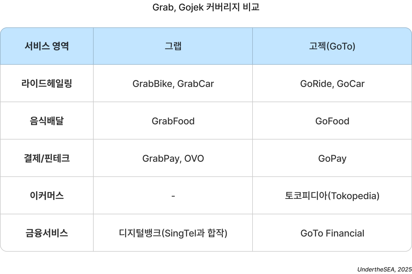 반면 그랩은 상대적으로 건전한 재무 상태를 유지하고 있고, 동남아 대부분 국가에서 우위를 점하고 있습니다. 다만 인도네시아에서만은 고젝과 피 터지게 싸워야 하는 상황이죠. (The Diplomat, 2025)