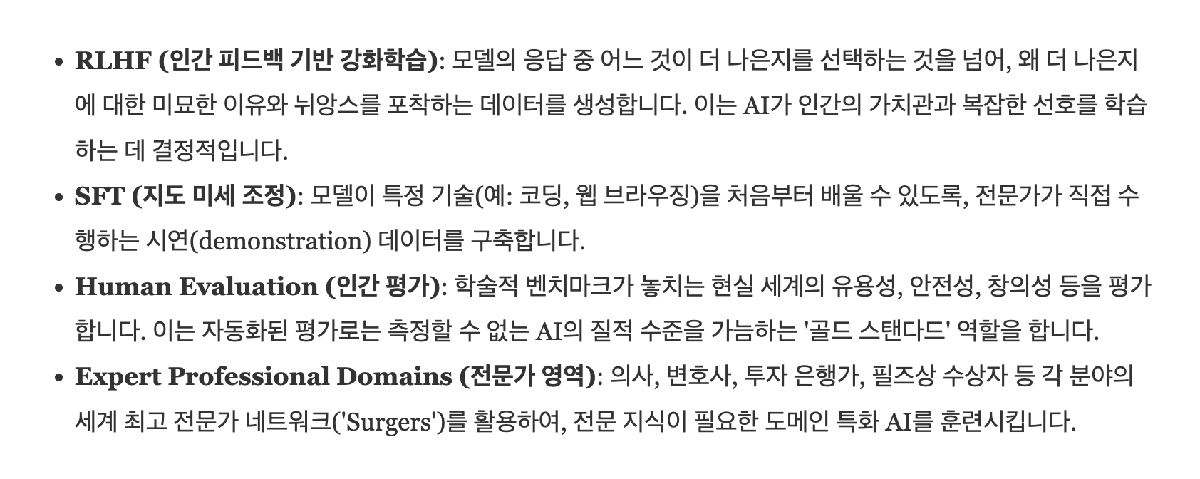 이런 질문들은 정답이 수천 가지예요. 주관적이고 미묘하고 복잡합니다. RLHF라는 게 등장하면서 이 변화는 더 극명해졌어요.
