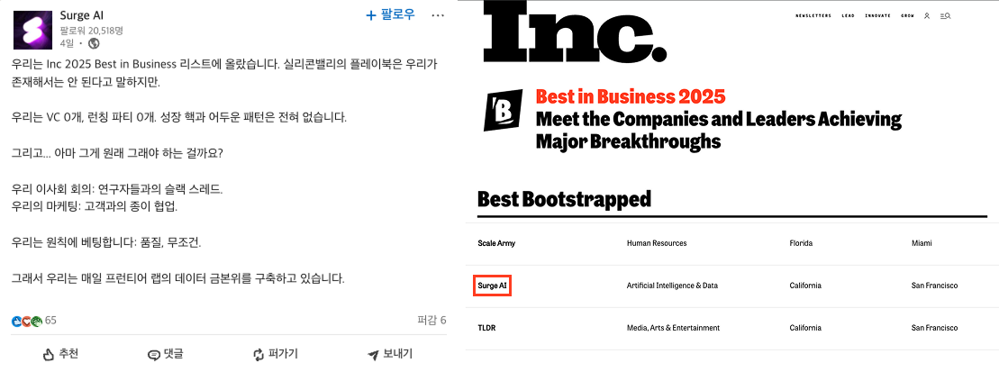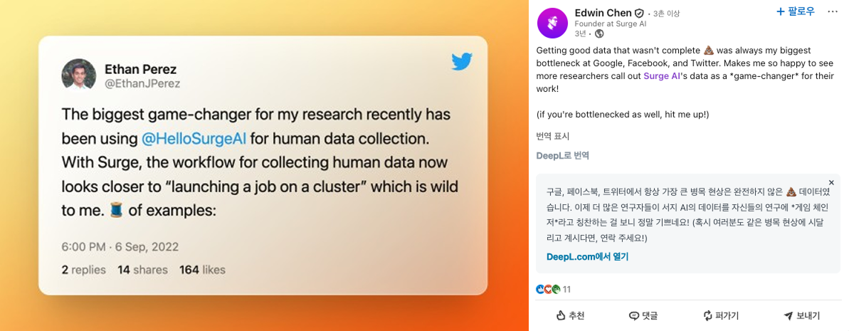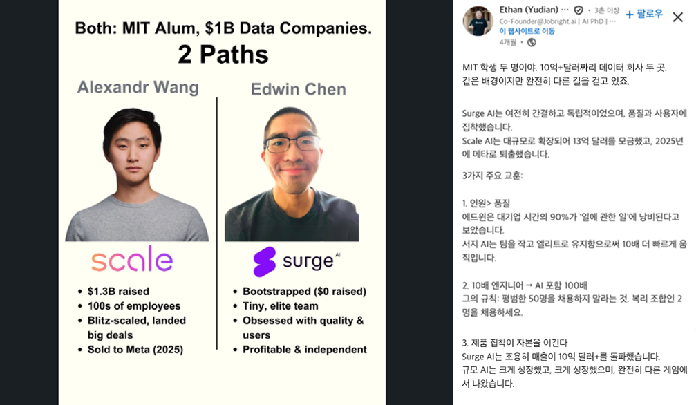 Scale AI를 쓰던 많은 팀들이 대안을 찾기 시작했습니다. 그때 떠오른 이름이 Surge AI였어요.