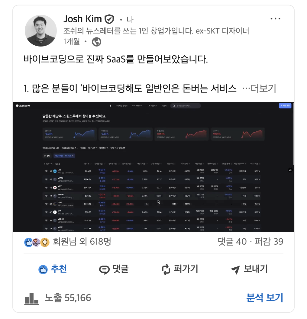저도 직접 바이브코딩으로 SaaS를 만들어서 팔고 있습니다. 기획자 출신이고, 코딩은 함수 정도만 읽을 수 있는 수준이에요. 그런데 Cursor 하나로 실제 결제 기능까지 들어간 서비스를 만들어냈어요. 쉽지는 않았지만, 분명히 가능한 일이었습니다.