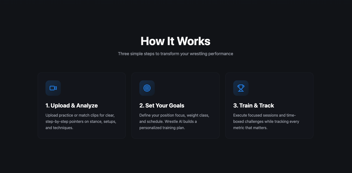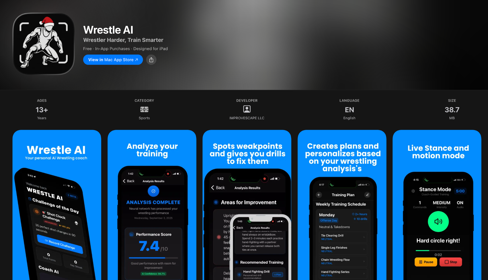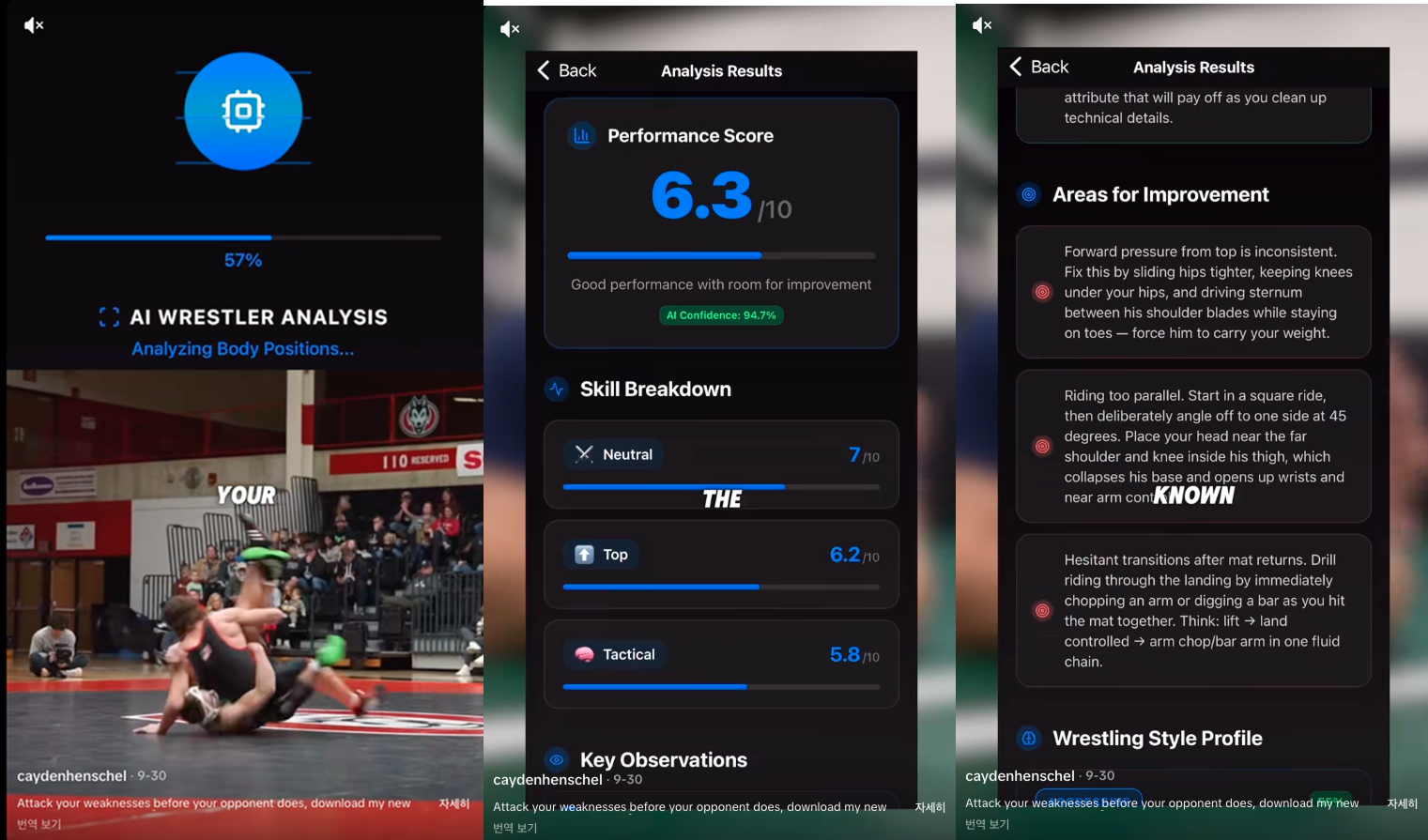 Wrestle AI라는 앱이에요. AI 레슬링 코치죠. 사용자가 자기 경기 영상을 업로드하면 AI가 분석해서 뭘 잘했고 뭘 못했는지 알려줘요. 어떻게 개선할 수 있는지, 어떤 훈련을 해야 하는지도 구체적으로 알려주고요.