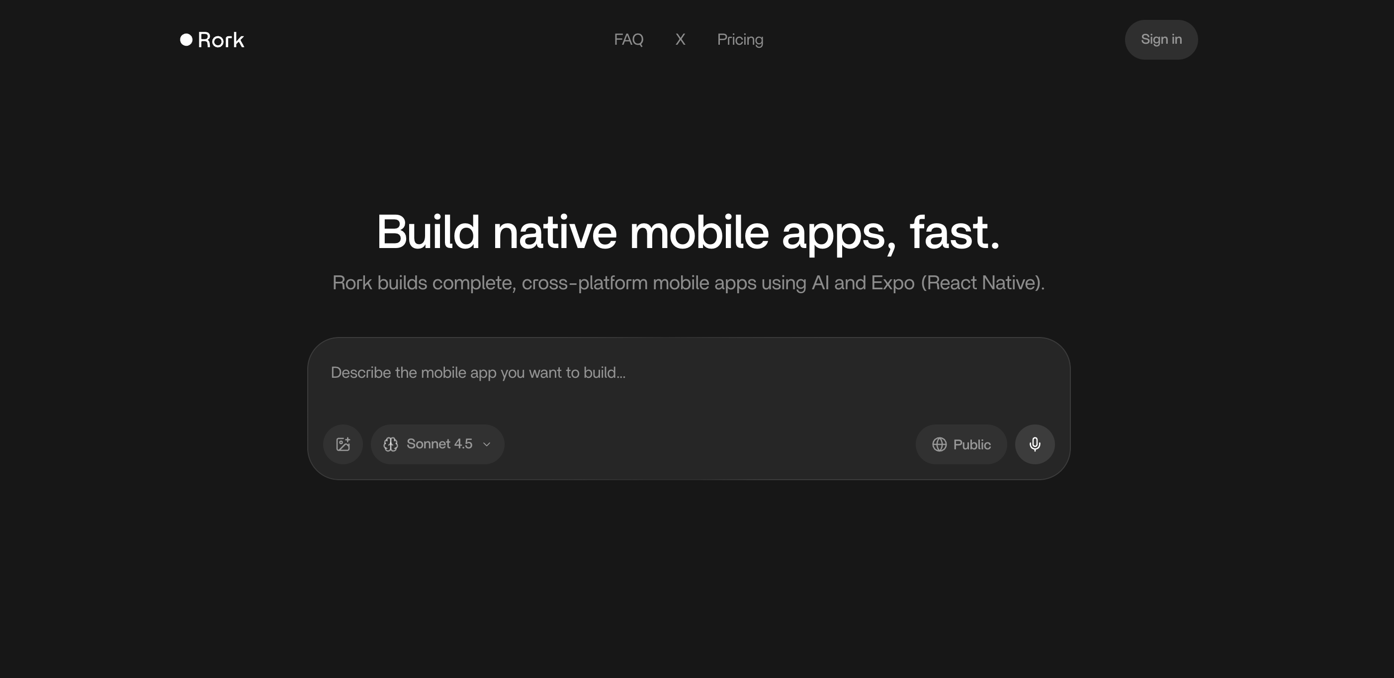 바이브코딩 플랫폼으로는 Rork가 최고예요. Bolt, Replit 같은 것도 있는데, 제 생각엔 Rork만 한 게 없어요.